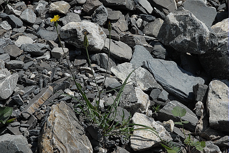 Plante vivace, haute de 40 à 120 cm, à racine épaisse sans chevelu fibreux au collet. Tige feuillée, monocéphale. Feuilles basales lancéolées à linéaires, entres souvent ondulées, les supérieures sessiles et demi-embrassantes. Fleurs jaune clair produisant un akène long de 10 à 20 mm à aigrette blanc brunâtre égalant l'akène.
