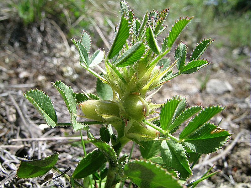 Plante vivace à souche ligneuse, pubescente-glanduleuse, haute de 10 à 20 cm, à tige dressée et ascendante. Les feuilles pétiolées sont formées de 3 folioles obovales-denticulés, la médiane pétiolée. Elles sont accompagnées d’une paire de stipules ovales-dentées. Les fleurs jaunes de 1 cm, dépassées par le calice sont dissimulées dans un épi abondamment feuillé.