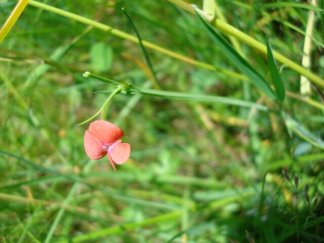 Gesse annuelle, grêle et généralement glabre de 15 à 40 mm de hauteur, à tiges dressées anguleuses. Feuilles à une paire de folioles linéaires-lancéolées supérieures terminées par une vrille non rameuse. Fleurs rougeâtres petites de 1 cm, solitaires portées par un pédicelle qui se prolonge par une longue soie. Le fruit est une silique linéaire de 4 à 6 cm de long, brune et veinée, renfermant 8 à 15 grosses graines sphériques.