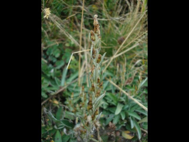Plante vivace, haute de 15 à 50 cm à tige non rameuse. Feuilles lancéolées généralement uninervées longues de 3 à 7 cm, blanches tomenteuses en dessous. Capitules longs de 5 à 7 mm groupés de 1 à 5 à l'aisselle des feuilles formant un long épi feuillé, espacé. Bractées de l'involucre à bord scarieux brun.
