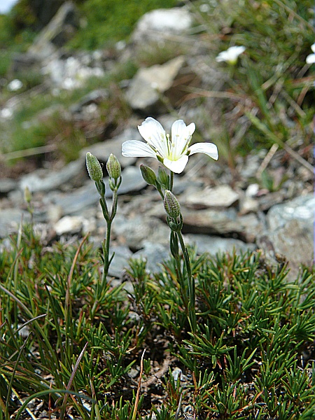 Espèce fréquente dans le secteur granitique Mont-Blanc/Aiguilles-Rouges notamment sur les adrets rocheux. L'espèce est très rare ailleurs : Bornes-Aravis, au Reposoir sur grès dans le mont Méry (pointe d'Areu) 8:1870, s-coll. (G) où cette minuartie silicole cotoie plusieurs autres espèces propres au secteur granitique.