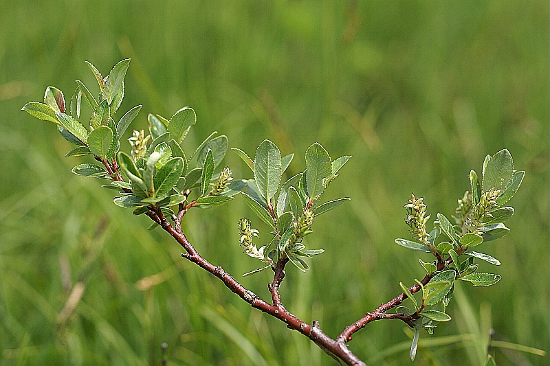 Arbuste de 40 cm à 1m30, plus ou moins tortueux à jeunes rameaux jaunâtres et pubescents. Feuilles entières, oblongues-elliptiques de 4 à 6 cm de longueur, vertes et glabres ou glabrescentes en dessus, blanches tomenteuses en dessous à nervures apparentes. Chatons de 3 à 6 cm de long, contemporains des feuilles portés par un pédoncule feuillé.
