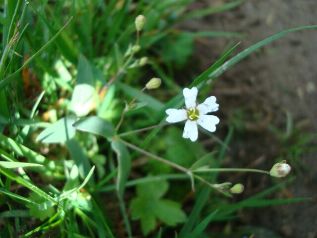 Plante vivace, haute de 10 à 20 cm, glabre et glauque. Feuilles lancéolées, aiguës. Inflorescence en cyme lâche composée de fleurs blanches aux pétales échancrés et recouverts d'écailles formant une coronule, longuement pédonculées. Calice court en cloche à 10 nervures. Capsule ovoïde, longue de 5 mm s'ouvrant par 6 dents.